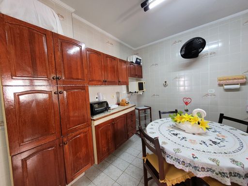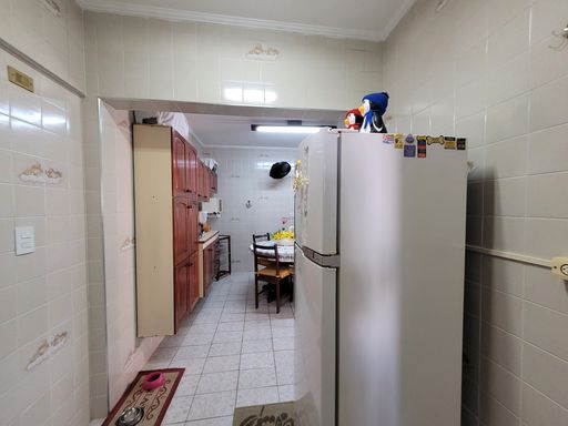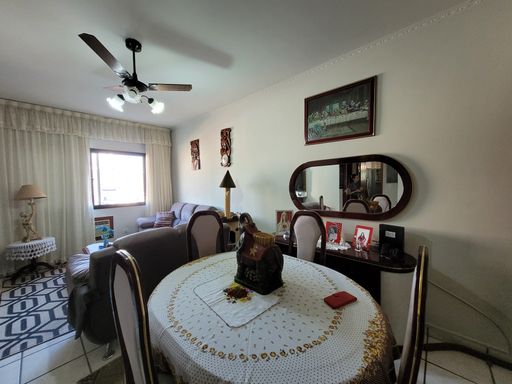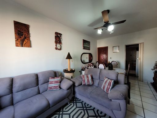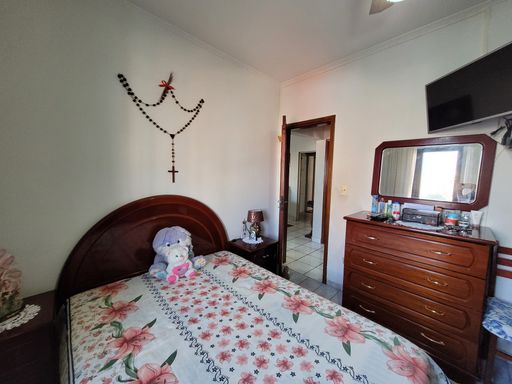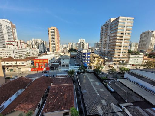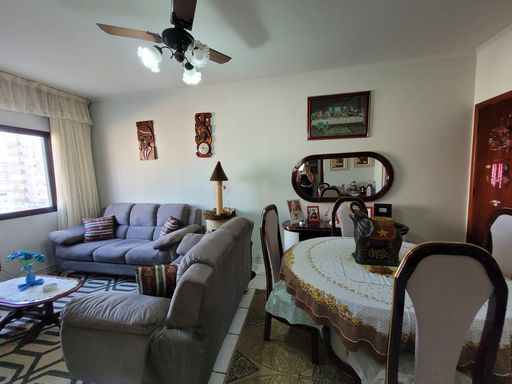 Amplo e mobiliado, este apartamento de 97m² no Canto do Forte, em Praia Grande/SP, conta com 2 dormitórios, 2 banheiros, sala espaçosa, está localizado em andar alto e possui 1 vaga de garagem.