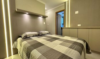 Invista em conforto e modernidade na Guilhermina, em Praia Grande/SP! Apartamento com 71m², 2 dormitórios sendo 1 suíte, com sacada integrada à sala e entregue com fechamento em vidro, garantindo amplitude e sofisticação.