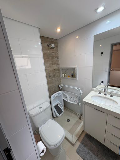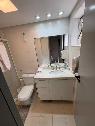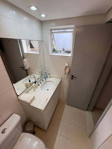 Condomínio dispõe de portaria 24h, sistema de monitoramento, reconhecimento facial nos portões, piscina, sauna e academia.