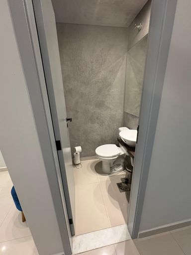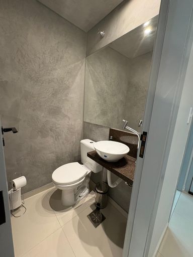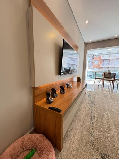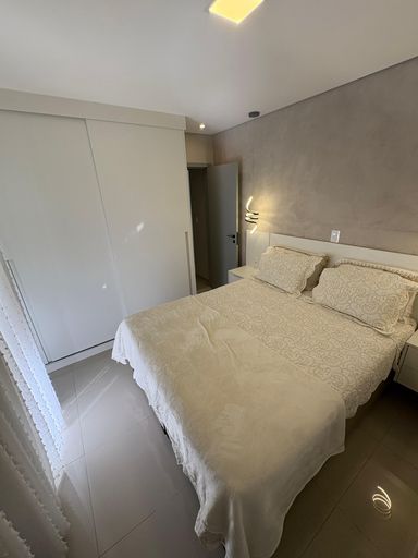 Guarda-roupas, gabinete dos banheiros e cabeceira da suíte do casal planejados, recém feitos.